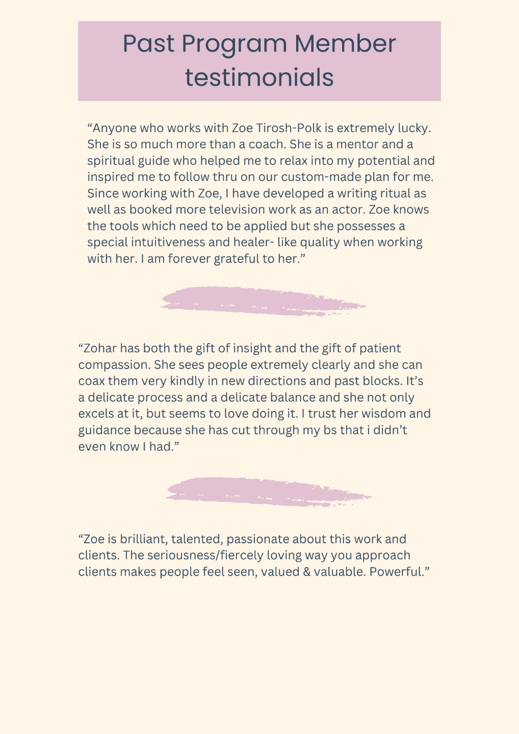 Zohar Tirosh-Polk is an accomplished playwright, screenwriter and life-long theater professional. She has worked extensively on multiple platforms from Broadway to Netflix and Apple TV+. Her award-winning plays have been presented at many theatres including: Lincoln Center Theater, The New Group, Magic Theatre and others. She holds BA from Columbia in Literature and Writing and and MFA in Playwriting from Brooklyn College under Mac Wellman. As a creative coach, Zohar has coached hundreds of artists guiding them towards creative fulfillment and success on their terms. She is trained by the Creativity Coaching Association and has studied with renowned creative and business coaches around the world. Zohar lives in NYC with her actor/producer husband and two young children.